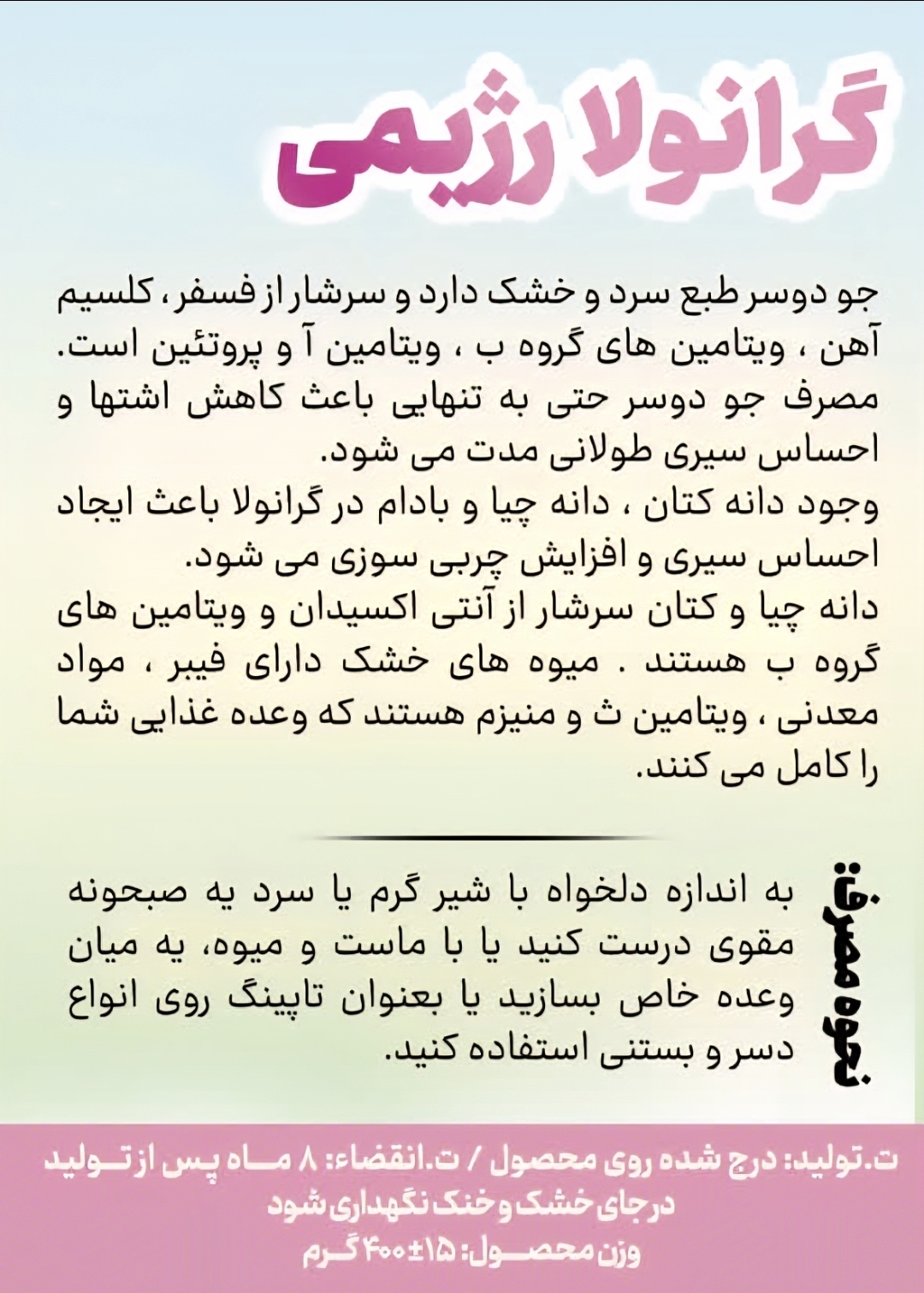 گرانولا رژیمی ۳۸۲,۰۰۰ تومان افزودن به سبد خرید نظرات هنوز نظری ثبت نشده اولین نفری باشید که نظر میدهید ثبت نظر نظر شما راجع به این محصول چیست؟ گرانولا رژیمی چه امتیازی به این محصول میدهید. ★ ★ ★ ★ ★ نام شما عنوان نظر شما متن نظر شما